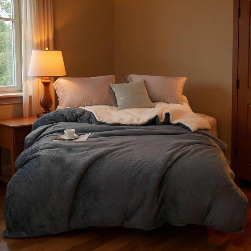 ● Doppelte, extra warme Fleece-Decke bietet optimalen Schutz vor Kälte und sorgt für kuschelige Nächte, selbst bei niedrigen Temperaturen. ● Hochwertiger Flanell-Bettbezug fühlt sich besonders weich auf der Haut an und ist atmungsaktiv sowie pflegeleicht – ideal für den täglichen Gebrauch. ● Perfekt geeignet für Einzelbetten, hält Sie auch alleine angenehm warm und ist eine stilvolle Ergänzung für jedes Schlafzimmer-Design. ● Vielseitig einsetzbar: Ob als Bettdecke, Sofadecke oder Kuscheldecke – genießen Sie maximalen Komfort und wohlige Wärme überall. ● Modernes, zeitloses Design passt zu verschiedenen Einrichtungsstilen und macht die Decke zum perfekten Geschenk für Familie und Freunde.